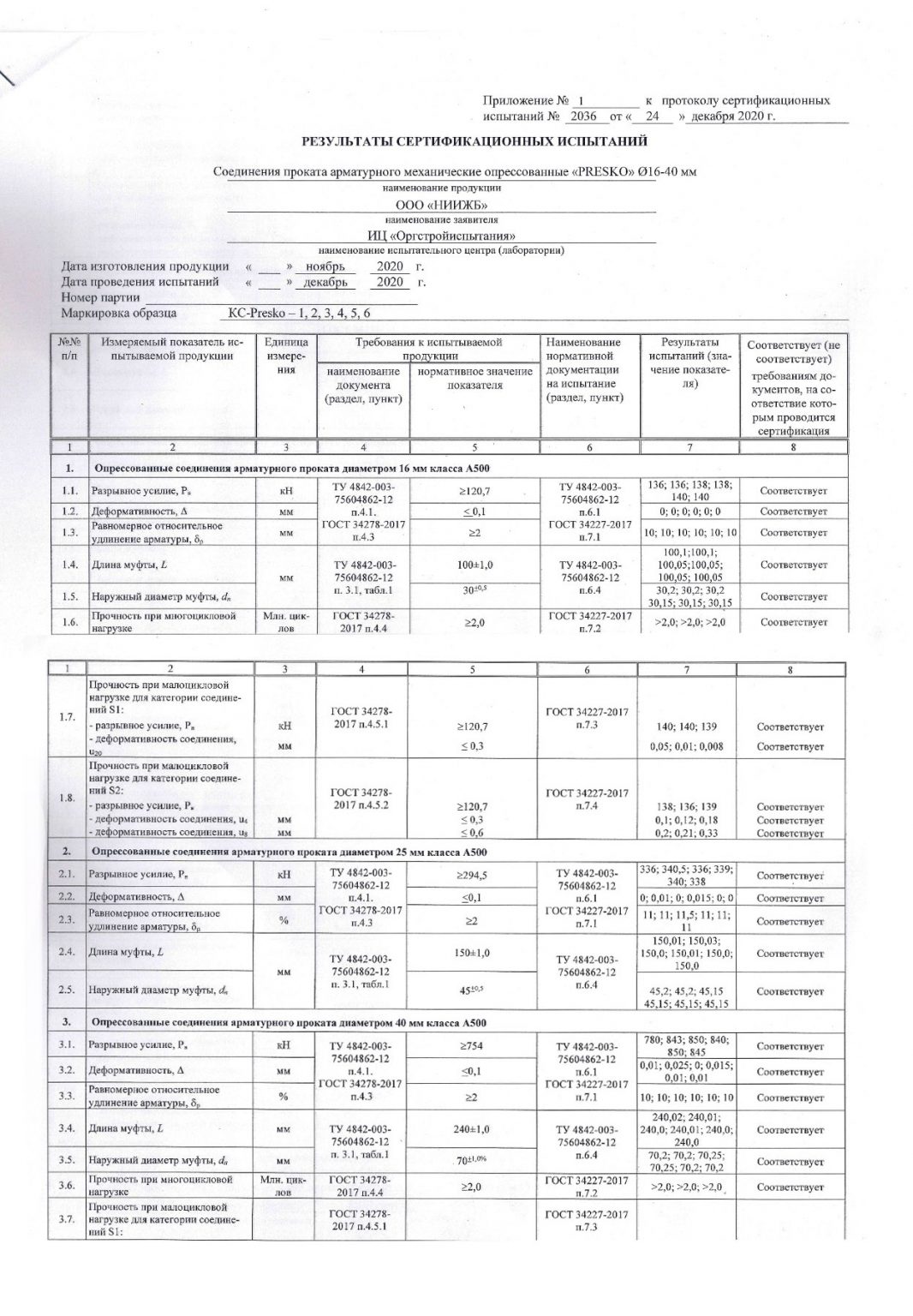 Стальные обжимные муфты «Преско», производимые группой компаний ПСК, изготавливаются на собственном производстве и проходят регулярные испытания на прочность и разрыв. Все изделия сертифицированы и соответствуют требованиям российских и международных стандартов.